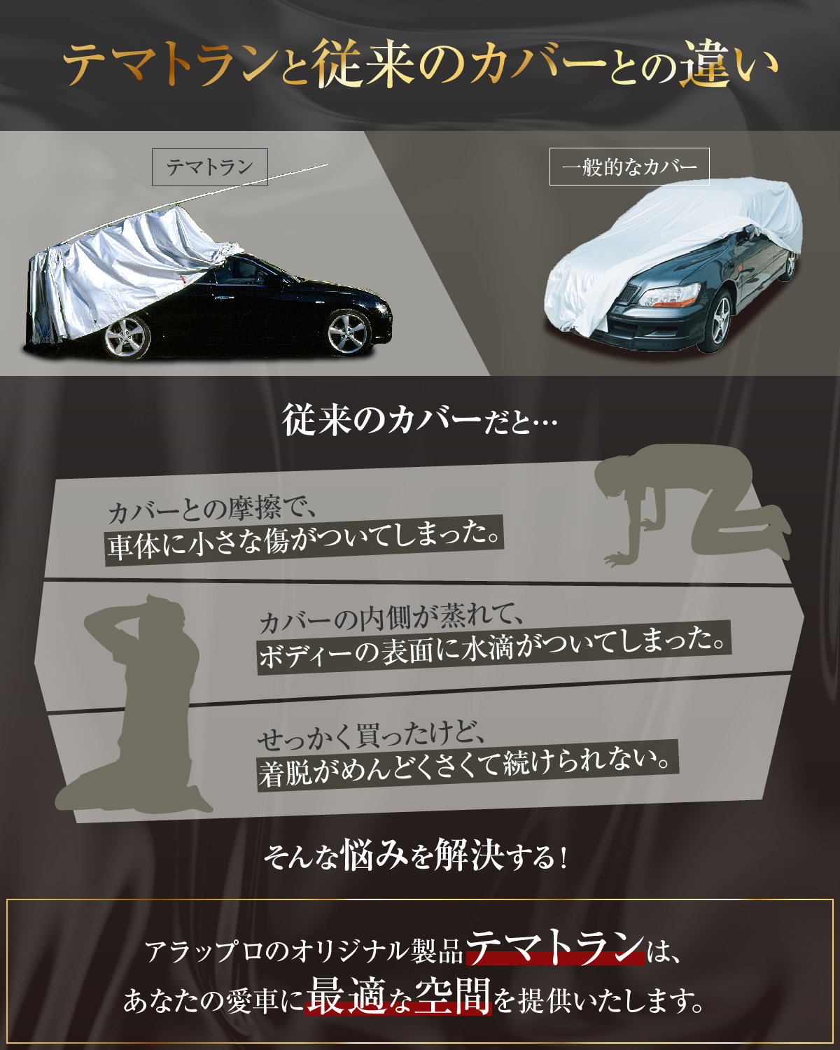 青空駐車場を簡単に「屋根付き」にできるカバーです。
